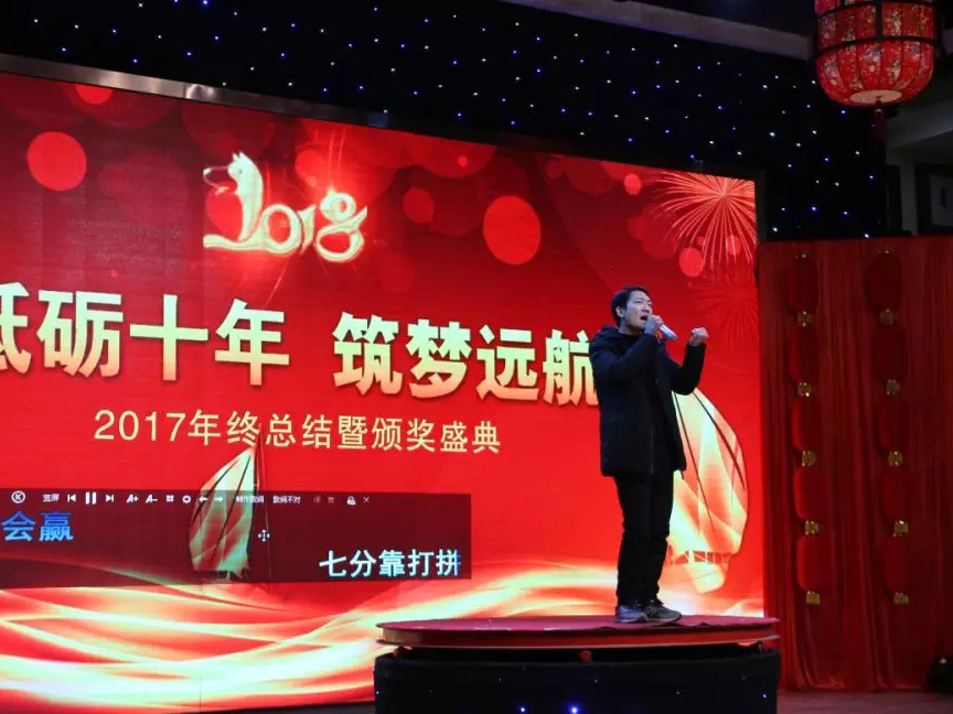 年會(huì)在主持人王文奇的一首振奮人心的《紅旗飄飄》中拉開帷幕。